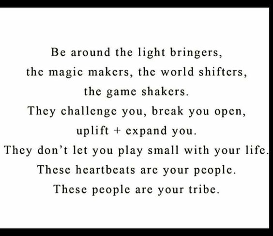 “Be around the light bringers, the magic makers, the world shifters, the game shakers. They challenge you, break you open, uplift + expand you. They don’t let you play small with your life.”