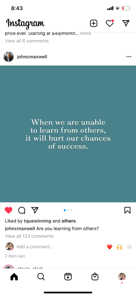 You’ve taken the seventh course this year, you read all the books, you’ve asked all the questions, you’ve uncovered all of the ‘yeah buts’ and the ‘it will never works’. Now it’s time to ask yourself, “have you taken a step to actually implement what you have learned?” Think about whether or not you are continuously burying yourself in the learning, but never actually taking action to implement what you have learned. And if you have put this strategy into motion, have you stuck with it long enough to see it through? Yeah…I was that person who loved to learn but never actually put that learning into my leadership game. I was constantly finding myself standing on the sidelines with all of these great ideas but never getting in the game. So I want to ask you this question, “Are you trying what you learned?”
